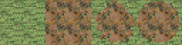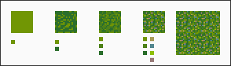 这是草地和土壤的示例。草是绿色的,但也混杂着棕色和其他颜色,并散布着一些点。土壤也是用许多随机散布的颜色构成的。这种随机性赋予了草和土壤一种自然的感觉,即使它们排列成连续的图案。