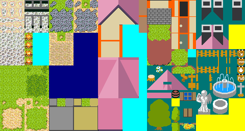 由于 RPG Maker 的布局和可用图像范围是固定的,你可能会发现之后没有足够的空间来绘制大型物体。为了避免这种情况,请仔细考虑你绝对需要什么,并从创建最大的物体开始。如果你要建造一座城市,房屋是最大也是最重要的芯片,所以先从绘制房屋开始。