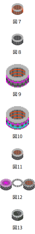 - 复制并粘贴步骤 8 中绘制的木板,并稍微移动它们的位置。制作中心芯片环(粉色部分)。请参考图示确定放置的板的数量和排列方式。