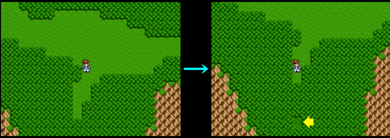 在下面的示例中,森林地形中人为地设置了一个死路,如果玩家继续前进,只需再走一格,就会发现不同的地形。